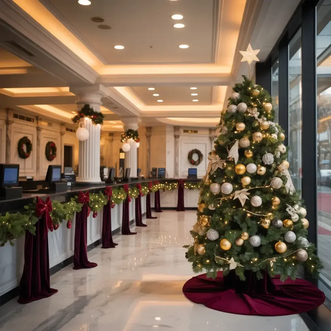 Transform your NEPA hotel with elegant Christmas décor—trees, lights, garlands, and wreaths that welcome guests with festive holiday cheer.